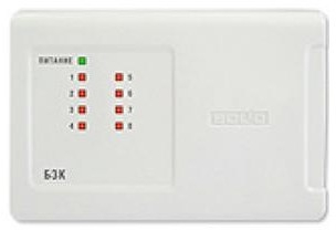 БЗК исп.01 - блок защитный коммутационный предназначен для распределения тока источника питания ("РИП-12", "РИП-24" или им подобным) по 8-ми каналам с индивидуальной защитой.