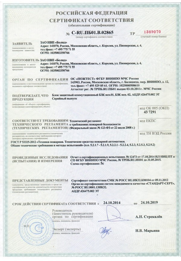 Блок защитный коммутационный, предназначен для распределения тока источника питания по 6 каналам с индивидуальной защитой, номинальный ток каждого канала - 0,6 A