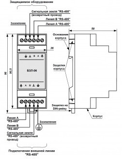 БЗЛ-06 используется для защиты оборудования, подключенного к линии связи интерфейса «RS-485» (сетевые контроллеры шлейфов сигнализации СКШС и т.п.). БЗЛ-06 содержит – один канал защиты линии связи «RS-485».