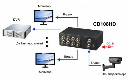 CD108HD - распределитель видеосигнала HDCVI/HDTVI/AHD/CVBS.