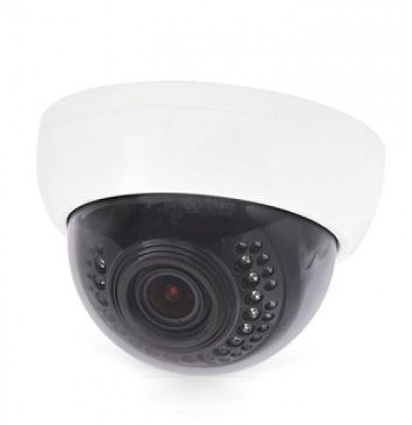 Компактная купольная камера день/ночь (мех. IR-фильтр),cо встроенной ИК-подсветкой (40СИД), 1/3 Sony Super HAD II CCD, NextChip DSP, 630ТВЛ, BLC, AGC, 2D DNR, D-WDR, 0.3/0.003лк, f=2.8-12мм, F 1.2 8 приватных зон, дет. движения (4 зоны), S/N 52дБ, питание -12В/~24В, 750мА макс h=93мм, d=130.0мм, возможна установка на стену (3 степени свободы), 350г