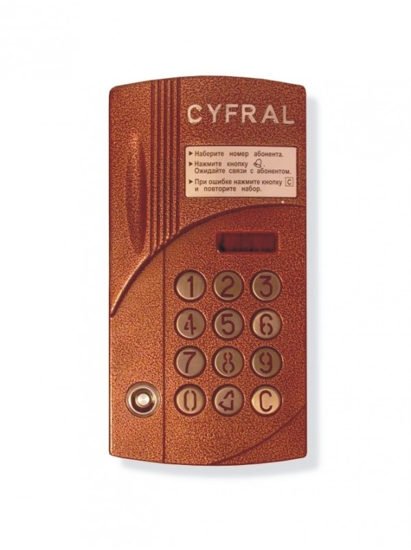 До 100 абонентов по координатной линии связи с использованием коммутатора КМГ-100 до 200 абонентов по координатной линии связи с использованием 2-х коммутаторов КМГ-100 встроенный считыватель и контроллер на 1500 ключей Touch Memory Cyfral (DC-2000А), Dallas DS1990A подсветка клавиатуры встроенная телекамера (ч/б, 380tvl, 0,01lux, PINHOLE) возможно использование частью абонентов в качестве квартирных устройств - трубок, другой частью абонентов - видеомониторов Цифрал .
