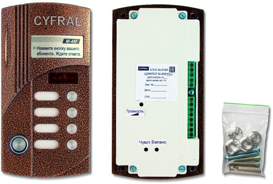 ЦИФРАЛ М-4М/ТVC - блок вызова врезного типа на 4 абонента прямой адресации с встроенной камерой цветного изображения и разрешением 720 ТВЛ предназначен для использования в составе домофонных систем «Цифрал» и установки в подъездах и на этажах жилых домов, коттеджей, офисов и промышленных предприятий.