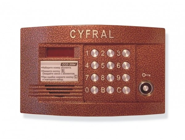 До 100 абонентов по координатной линии связи с использованием коммутатора КМГ-100 до 200 абонентов по координатной линии связи с использованием 2-х коммутаторов КМГ-100 встроенный считыватель и контроллер на 1500 ключей Touch Memory Cyfral (DC-2000А), Dallas DS1990A подсветка клавиатуры встроенная телекамера (ч/б, 380tvl, 0,01lux, PINHOLE) возможно использование частью абонентов в качестве квартирных устройств - трубок, другой частью абонентов - видеомониторов Цифрал .