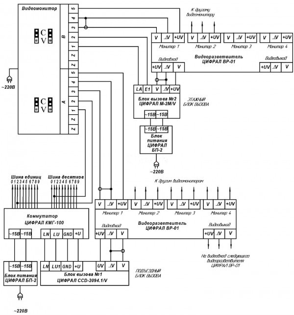 - подключение к координатной и цифровой домофонной линии сторонних производителей через блок сопряжения.
