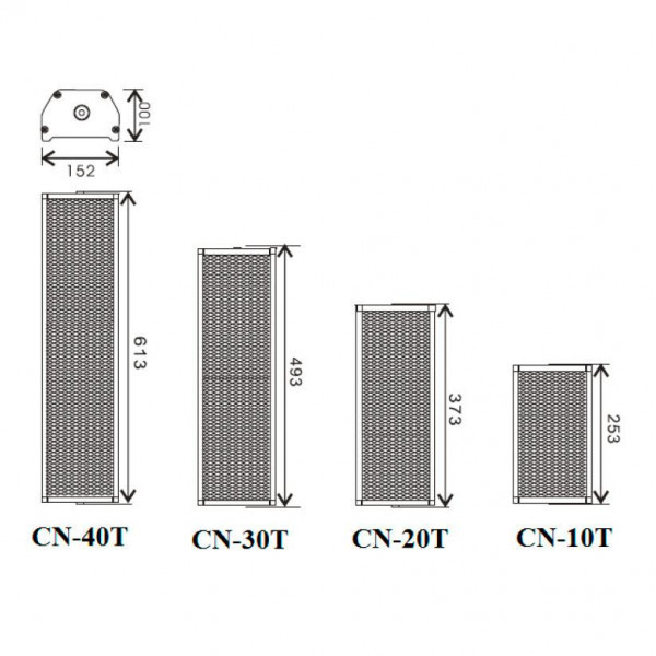 CN-10T - речевой всепогодный (IP65) однополосный настенный колонного типа накладной оповещатель с встроенным трансформатором, переключаемой мощностью 5/10 Вт и возможностью подключения к высокоомному выходу сопротивлением 1000/2000 Ом и питанием 70/100В предназначен для воспроизведения сигналов ГО и ЧС, речевых сообщений и фоновой музыки в системах пожарного оповещения.