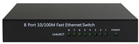 Коммутатор 8xRJ45 10/100. Производительность до 1.6Gbps. Store-And-Forward, Auto-negotiation, Flow Control, Full duplex. Питание 12VDC (блок питания 12VDC / 1A в комплекте), потребление 4Вт. Температурный диапазон 0 C ~ +40 C, IP20, вес 270г, размеры 130х67х25мм. Металлический кожух.