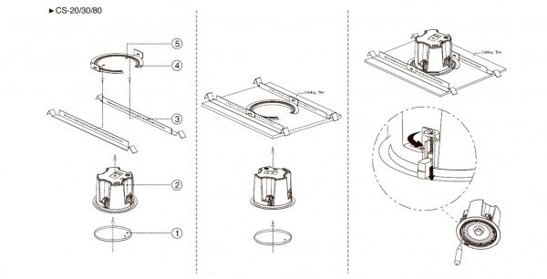 CS-30 - речевой широкополосный потолочный врезной оповещатель с встроенным трансформатором, переключаемой мощностью 10/20/30 Вт и возможностью подключения к низкоомному и высокоомному выходам сопротивлением 8 и 330/500/1000 Ом (с питанием 70/100В) предназначен для воспроизведения сигналов ГО и ЧС, речевых сообщений и фоновой музыки в системах пожарного оповещения.