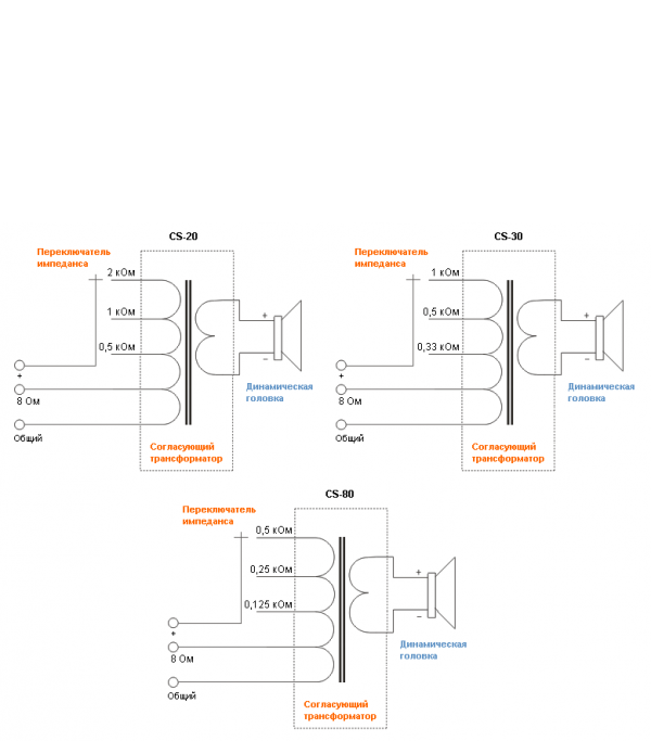 Для подключения трансляционной линии используется встроенная клеммная колодка на корпусе, а изменение мощности осуществляется переключателем импенданса.