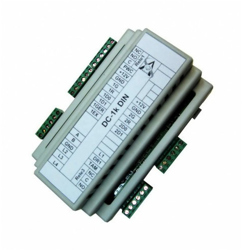 СШС-офис DC-1K (КД-А-3.3) DIN - сетевой контроллер доступа с регистрацией событий по входу и выходу, памятью 1000 ключей, 2000 событий, креплением на DIN-рейку, 1 луч охраны, 2 исполнительных устройства - реле и открытый коллектор, встроенные часы, возможности подключения: 1 геркона, 2 считывателя, 1 кнопки выхода, 1 замка (турникет).