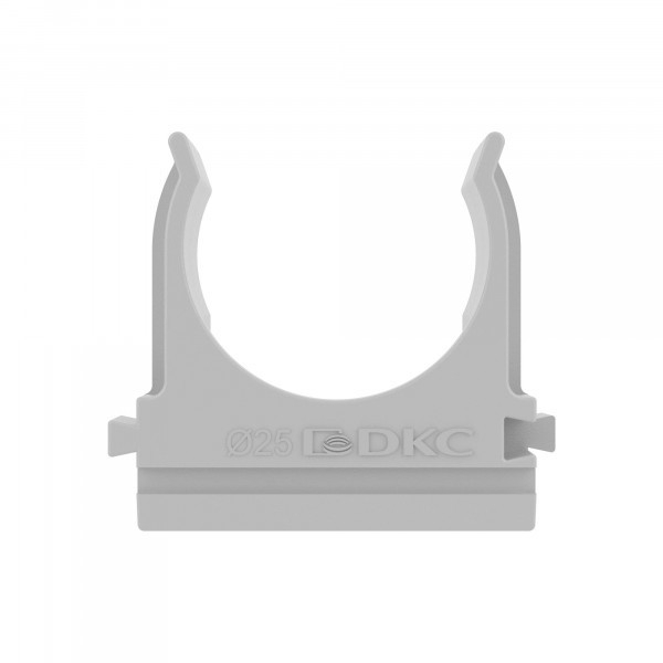 Держатель с защёлкой для труб d-25 (51025) DKC - держатель серого цвета из ABS пластика + полипропилена с крепёжным отверстием, защёлкой и посадочным диаметром 25 мм. (100шт./уп.) для жёсткой фиксации гофрированной или жесткой гладкой трубы к поверхности стен, потолков, полов или перегородок.