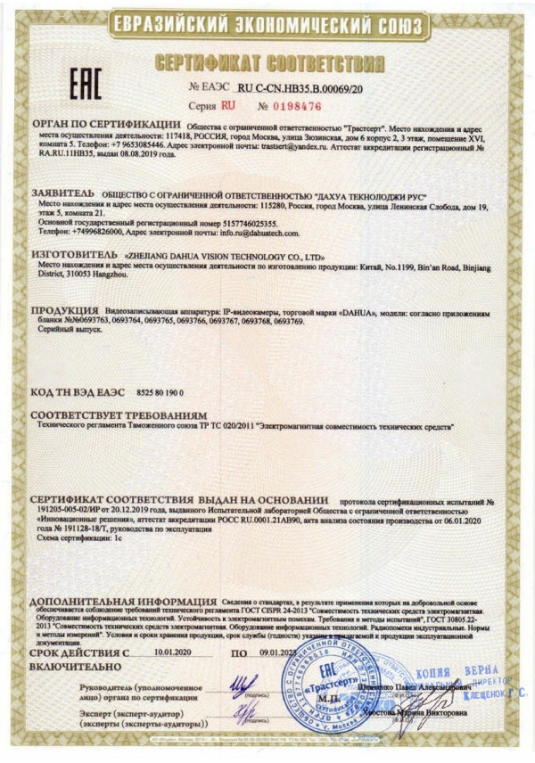 Dahua Cloud; FTP; Micro SD (до 256 Гб); NFS