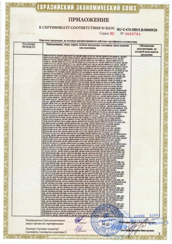 - Сжатие: H.265+/H.265/H.264+/H.264/H.264B/H.264H/MJPEG,2 потока.