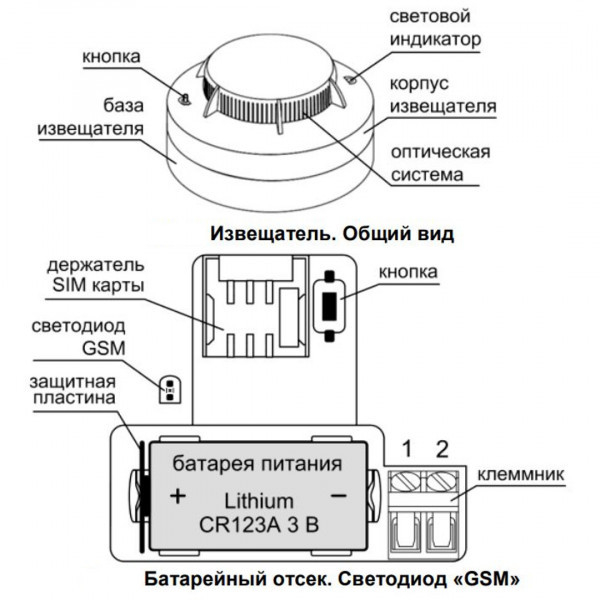 - Световая индикация состояния извещателя.