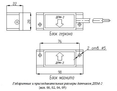 ДПМ-2 исп. 02 - извещатель накладной охранный точечный магнитоконтактный с перекидными типа (НО и НЗ) контактами, в корпусе из пластмассы и белого цвета, с проводным выводом кабеля КСПВГ 3х0,22 и длиной (0,35м; другая - под заказ) без защитного рукава предназначен для блокировки гаражных ворот, ангаров, железнодорожных контейнеров, телефонных шкафов и других конструктивных магнитопроводящих (металлических) и магнитонепроводящих (алюминиевых, деревянных и т.д.) элементов зданий и сооружений на открывание и смещение с выдачей в шлейф приёмно-контрольного прибора извещения о тревоге путем переключения контактов геркона.