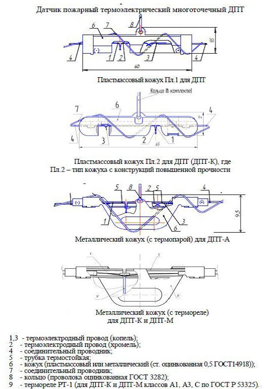 ДПТ R Пл.1 - датчик тепловой пожарный термоэлектрический (дифференциальный) многоточечный, класса срабатывания (R), взрывозащищённый (0ExiaIICT6 или POExiaI-подземный), в пластиковом трудногорючем корпусе с коррозионным покрытием (Лак УР-231), входит в состав извещателя (ИП 102-2Х2), степенью защиты (IP65) рекомендован для защиты объектов с тяжелыми условиями эксплуатации (взрывоопасные, объекты нефте-газовой, энергетической, угольной промышленности, шахты, ГОК, объекты с высотой выше 12 м, а также в местах, где в процессе эксплуатации возможно дополнительное механическое воздействие: случайные зацепы движущимися предметами, птицами).