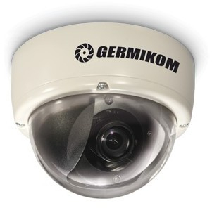 Цветная купольная ДЕНЬ-НОЧЬ видеокамера Germikom оснащена видеосенсором 1/3 SONY ExView HAD разрешение 520/530 Твл чувствительность 0,05/0,025 Лк вариофокальный объектив углы обзора 130 30 напряжение питания 12 В / потребляемый ток 0,1 А