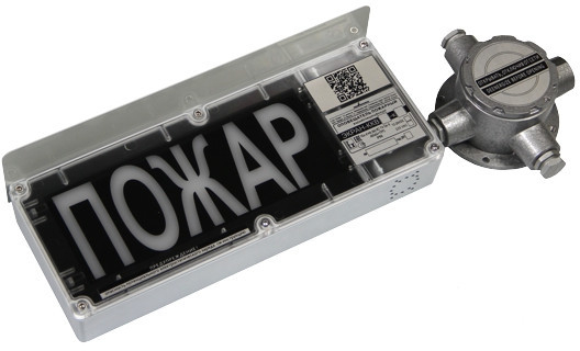 ЭКРАН-С-ККВ-К2-24VDC ПОЖАР - взрывозащищенный световой оповещатель (Табло) с дополнительной световой секцией - "АВТОМАТИКА ОТКЛЮЧЕНА" (или другой по заявке), с алюминиевой коммутационной коробкой (ККВ-07е-К), постоянным или мигающим свечением надписи, внутренней искробезопасной цепи (ib) и напряжением питания (10,5 - 28В) предназначен в качестве средства оповещения в системах пожарной сигнализации во взрывоопасных зонах.