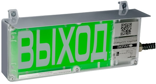 ЭКРАН-СУ-К1-220VАC ВЫХОД - взрывозащищенный световой указатель (Табло) без дополнительных секций, постоянным свечением надписи, внутренней искробезопасной цепи (ib) и напряжением питания (100 - 240В) предназначен в качестве средства оповещения в системах пожарной сигнализации во взрывоопасных зонах.