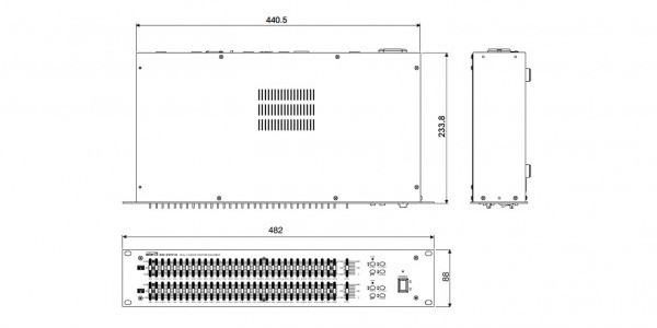 EQ-2231A - графический эквалайзер имеет 2 независимых канала, в каждом из которых предусмотрена 31 полоса для регулировки амплитудно-частотной характеристики.