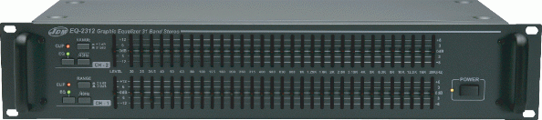 EQ-2312 - графический 2-канальный 2х31-полосный стерео эквалайзер с возможностью регулирования частотного спектра звукового сигнала с шагом в 1/3 октавы начиная с 20 Гц, балансной электронной схемы для устранения внешних помех на симметричном входе.