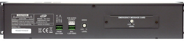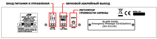 При доукомплектации данного блока платой аварийных сообщений (EU-2211M - приобретается отдельно), после сирены происходит также запуск речевого оповещения с помощью записанных в память аварийных сообщений.