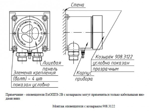 Крепление извещателя осуществляется с помощью 4-х болтов (в комплект поставки не входят).