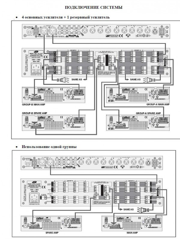 - Одна группа 8 усилителей + 1 резервный усилитель.