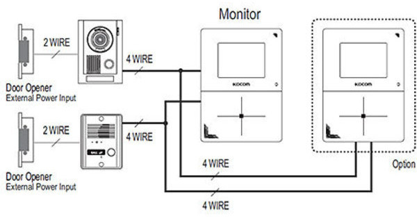 Параллельное подключение суммарно до 2-х мониторов домофонов.