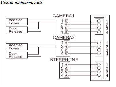 - возможность подключения 2 камер или 2 вызывных панелей;
