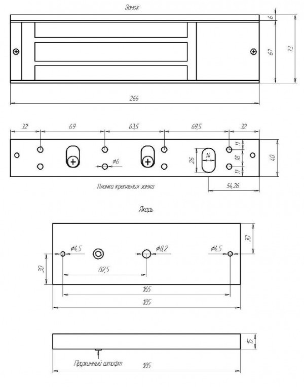 266х67х41 (замок); 185х60х15 (якорь)