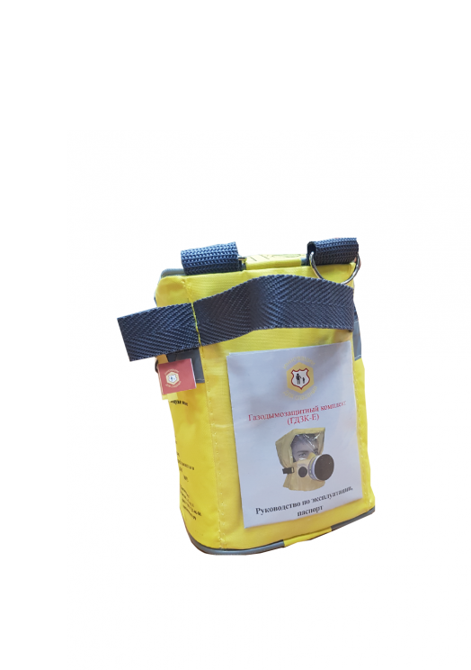 Газодымозащитный комплект ГДЗК-Е - фильтрующий аналог самоспасателя для индивидуальной защиты органов дыхания и зрения людей от токсичных продуктов горения (в том числе от монооксида углерода) при эвакуации из задымлённых помещений во время пожара (при пожаре), а также от других опасных химических веществ (паров, газов, аэрозолей) в случаях техногенных аварий и террористических актов.