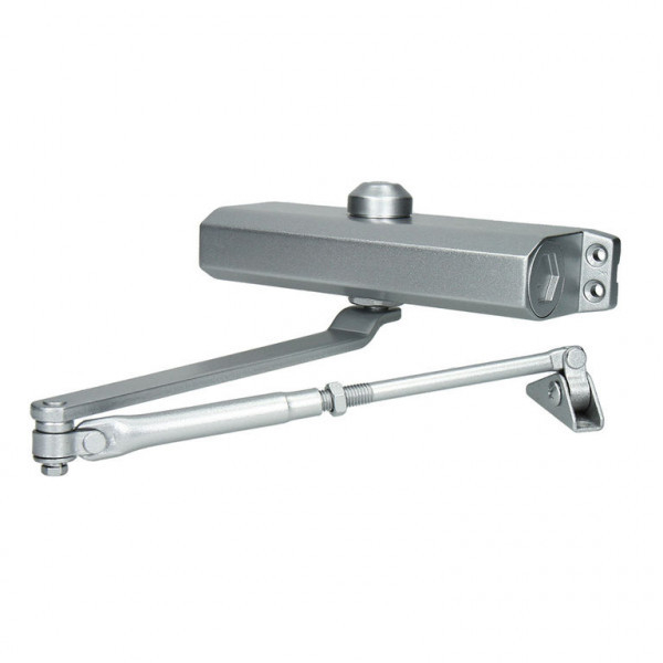GF-602(серебро) - доводчик дверной с доведением и дохлопом предназначен к установке на все типы дверей, кроме цельностеклянных весом до 60 кг, шириной 950 мм как внутри помещения, так и на улице.