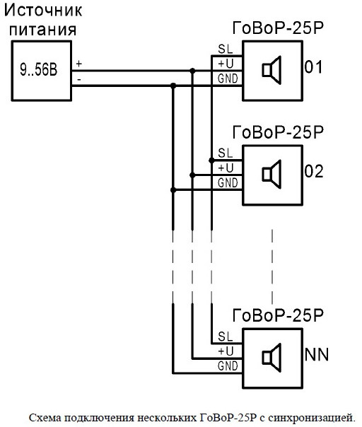 К 1-ому УКЛО возможно подключить до 4-ёх оповещателей ГоВоР-25Р.