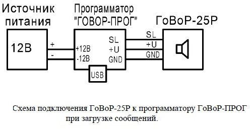 При помощи программатора «ГоВоР-ПРОГ» (поставляется по отдельному заказу) можно загрузить в память оповещателя свой уникальный набор сообщений.