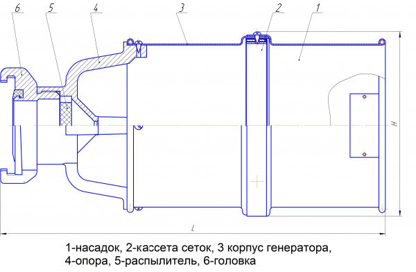 Генератор пены представляет собой водоструйный эжекторный аппарат переносного типа.