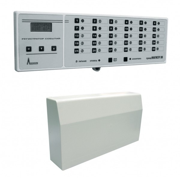 Для работы в комплексной системе безопасности МАГИСТРАТОР без клавиатуры, 30 ШС, под акк. 7 Ач, пластмассовый корпус выход питающего напряжения 12 В до 0,75 А сирена до 1,0 А контролируемые на обрыв и К.З. выходы оповещателей, встраиваемые модули регистратор на 256 событий + релейные модули РМ4, РМ8, РМ16 (250В, 7А) + модуль доступа + сетевой адаптер для работы в системе Магистратор программирование с помощью программного обеспечения ПО МАГИСТРАТОР