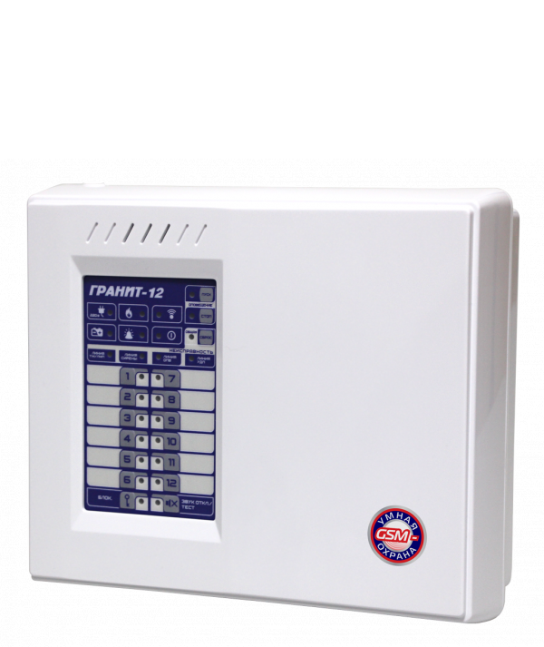 Прибор приемно-контрольный Гранит-12А, 12 зон, GSM-терминал, автодозвон по линиям ГТС, речевые сообщения, РИП, программирование через ПК (USB).