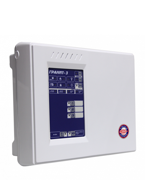 Прибор приемно-контрольный Гранит-3А, 3 зоны, GSM-терминал, автодозвон по линиям ГТС, речевые сообщения, РИП, программирование через ПК (USB).
