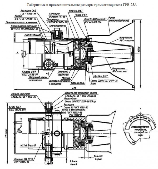 - ГРВ-25А разн (рупор реч 103дБ оповещ Взрыво 25вт 16-20_90-100_120-140в -50+55 IP54) руков 2020г