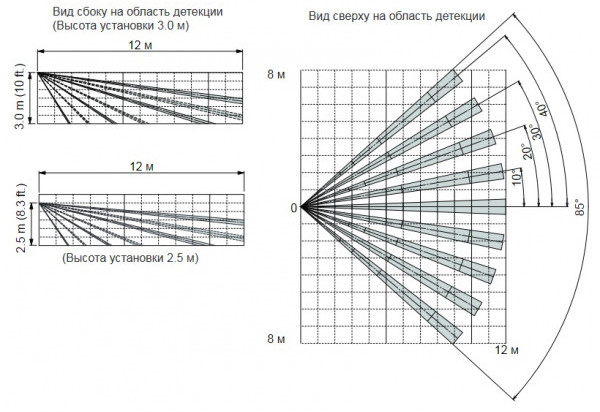 - объемная зона обнаружения (линза - "стандарт");