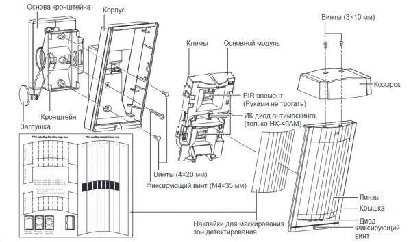 HX-40AM (Optex) - извещатель охранный инфракрасный оптико-электронный пассивный с двойным пироэлементом предназначен для обнаружения проникновения на открытые уличные площадки, а также в охраняемое закрытое пространство и формирование извещения о тревоге путем переключения (НО и НЗ) и неисправности - размыканием (НЗ) выходных 2-ух контактов оптоэлектронных реле.