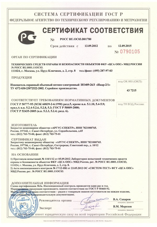 Извещатели охранные для помещений