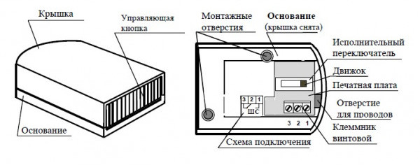 - клеммы переключения (НЗ и НО) на размыкание (ШС)/ замыкание (оповещателей).