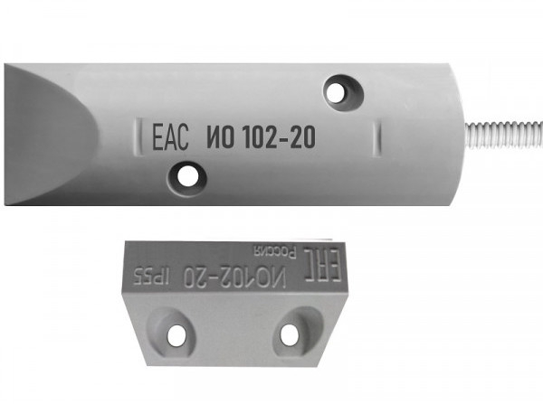 ИО 102-20 А2П (2) - извещатель накладной охранный точечный магнитоконтактный с нормально-открытого типа (НО) контактами, в корпусе из пластмассы и цвета (белый, серый, чёрный - указать в заказе), с проводным выводом в пластиковом гофрорукаве и длиной (0,6м) предназначен для блокировки гаражных ворот, ангаров, железнодорожных контейнеров, телефонных шкафов и других конструктивных магнитопроводящих (металлических) и магнитонепроводящих (алюминиевых, деревянных и т.д.) элементов зданий и сооружений на открывание и смещение с выдачей в шлейф приёмно-контрольного прибора извещения о тревоге путем размыкания контактов геркона.