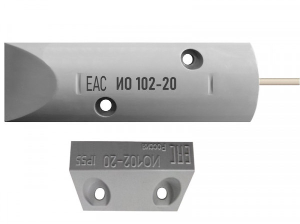 ИО 102-20 А3П (1) - извещатель накладной охранный точечный магнитоконтактный с перекидными типа (НО и НЗ) контактами, в корпусе из пластмассы и цвета (белый, серый, чёрный - указать в заказе), с проводным выводом в обычной изоляции и длиной (0,6м) без защитного рукава предназначен для блокировки гаражных ворот, ангаров, железнодорожных контейнеров, телефонных шкафов и других конструктивных магнитопроводящих (металлических) и магнитонепроводящих (алюминиевых, деревянных и т.д.) элементов зданий и сооружений на открывание и смещение с выдачей в шлейф приёмно-контрольного прибора извещения о тревоге путем переключения контактов геркона.