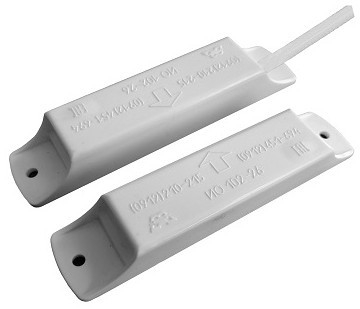 ИО 102-26 исп. 02 "Аякс" - извещатель накладной охранный точечный магнитоконтактный с перекидными типа (НО и НЗ) контактами, в корпусе из пластмассы и белого цвета, с проводным выводом кабеля КСПВГ 3х0,2 и длиной (0,35м; другая - под заказ) без защитного рукава предназначен для блокировки гаражных ворот, ангаров, железнодорожных контейнеров, телефонных шкафов и других конструктивных магнитопроводящих (металлических) и магнитонепроводящих (алюминиевых, деревянных и т.д.) элементов зданий и сооружений на открывание и смещение с выдачей в шлейф приёмно-контрольного прибора извещения о тревоге путем переключения контактов геркона.