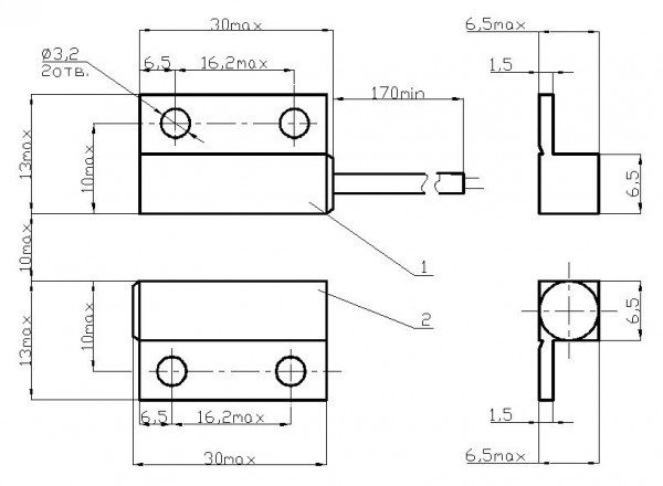 ИО 102-4 - извещатель накладной охранный точечный магнитоконтактный с нормально-открытого типа (НО) контактами, в корпусе из полистирола, с проводным выводом в обычной изоляции и длиной (0,16/0,32/0,5м - указать в заказе; другая - под заказ) без защитного рукава и предназначенным для организации устройств типа «ловушка», блокировки дверных и оконных проемов, а также других конструктивных магнитопроводящих (металлических) и магнитонепроводящих (алюминиевых, деревянных и т.д.) элементов зданий и сооружений на открывание и смещение с выдачей извещения о тревоге на пульт централизованного наблюдения, прибор приёмно-контрольный или концентратор путем размыкания контактов геркона.