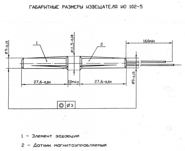 ИО 102-5 - извещатель врезной охранный точечный магнитоконтактный с нормально-открытого типа (НО) контактами, в корпусе из полистирола, с проводным выводом в обычной изоляции и длиной (0,16/0,32/0,5м - указать в заказе; другая - под заказ) без защитного рукава и предназначенным для организации устройств типа «ловушка», блокировки дверных и оконных проемов, а также других конструктивных магнитопроводящих (металлических) и магнитонепроводящих (алюминиевых, деревянных и т.д.) элементов зданий и сооружений на открывание и смещение с выдачей извещения о тревоге на пульт централизованного наблюдения, прибор приёмно-контрольный или концентратор путем размыкания контактов геркона.