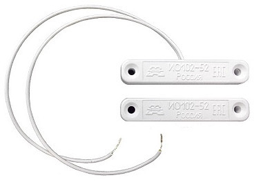 ИО 102-52 - извещатель накладной охранный точечный магнитоконтактный с нормально-открытого типа (НО) контактами, в корпусе из ABS-пластика, с проводным выводом в обычной изоляции и длиной (0,17м; другая - под заказ) без защитного рукава предназначен для организации устройств типа «ловушка», блокировки дверных и оконных проемов, а также других конструктивных магнитопроводящих (металлических) и магнитонепроводящих (алюминиевых, деревянных и т.д.) элементов зданий и сооружений на открывание и смещение с выдачей извещения о тревоге на пульт централизованного наблюдения, прибор приёмно-контрольный или концентратор путем размыкания контактов геркона.